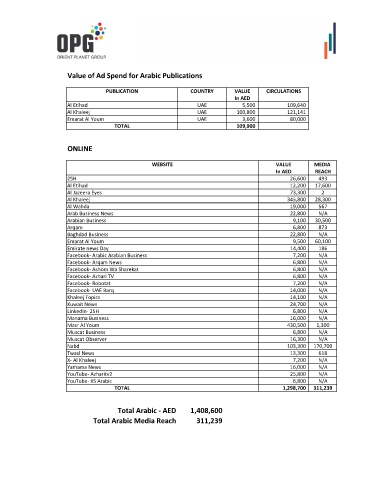 Value of Ad Spend for Arabic Publications