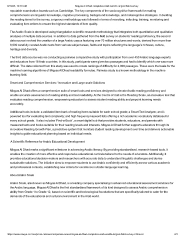 the Arabic language. Miqyas Al Dhad is the first standardised framework of its kind designed to assess Arabic comprehension