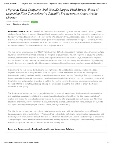 field survey. This achievement paves the way for the official launch of the Arabic reading scale in the third quarter of