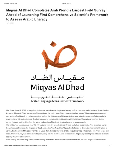Abu Dhabi, June 18, 2025: In a significant milestone towards enhancing Arabic reading proficiency among native students, Arabic Scale -