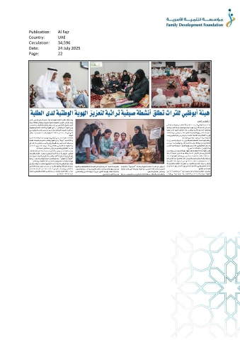 Publication: Al Fajr Country: UAE Circulation: 34,596 Date: 24 July 2025 Page: 22