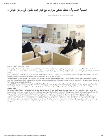 7/21/25, 10:16 AM «ﻲﺛﺎﯾﻏ زﻛرﻣ ﻲﻓ نﯾﻧطاوﻣﻟا رﺎﺑﻛ ﻊﻣ ً ﺎﯾراوﺣ ﻰﻘﺗﻠﻣ مظﻧﺗ «ﺔﯾرﺳﻷا ﺔﯾﻣﻧﺗﻟا