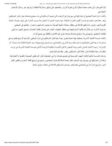 ﺞﻣارﺑ مﯾدﻘﺗﺑ ﺦﺳارﻟا ﺎﮭﻣازﺗﻟا ،ﻲﺑظوﺑأ ةرﺎﻣإ ﻲﻓ نﯾﻧطاوﻣﻟا رﺎﺑﻛ ةﺎﯾﺣ ةدوﺟ زﯾزﻌﺗﺑ ﺔﯾﻧﻌﻣ ﺔﮭﺟ ﺎﮭﺗﻔﺻﺑ ،ﺔﯾرﺳﻷا ﺔﯾﻣﻧﺗﻟا ﺔﺳﺳؤﻣ تدﻛأو