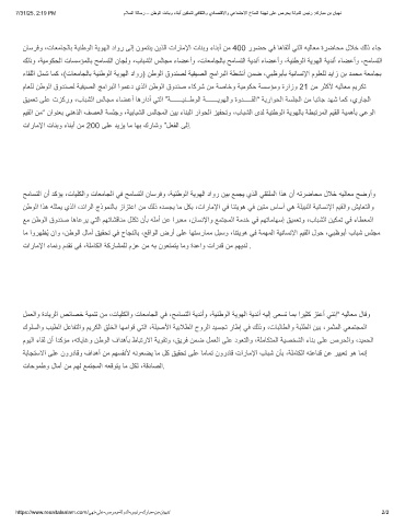 نﺎﺳرﻓو ،تﺎﻌﻣﺎﺟﻟﺎﺑ ﺔﯾﻧطوﻟا ﺔﯾوﮭﻟا داور ﻰﻟإ نوﻣﺗﻧﯾ نﯾذﻟا تارﺎﻣﻹا تﺎﻧﺑو ءﺎﻧﺑأ نﻣ 400 روﺿﺣ ﻲﻓ ﺎھﺎﻘﻟأ ﻲﺗﻟا ﮫﯾﻟﺎﻌﻣ ةرﺿﺎﺣﻣ لﻼﺧ كﻟذ ءﺎﺟ