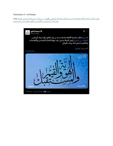 Publication: X – Al Khaleej Link: # ىلع صرحي ةلودلا سيئر :كرابم_نب_نايهن# ..يبظوبأب ةيناسنلإا مولعلل دياز نب دمحم ةعماجب اهاقلأ ةرضاحم للاخ | ويديف نطولا تانبو ءانبأ نيكمتل يفاقثلاو يداصتقلااو يعامتجلاا خانملا ةئيهت