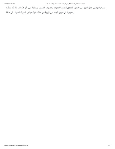 ﺔﻗﺎط ﻰﻟإ تﺎﯾﺎﻔﻧﻟا لﯾوﺣﺗﻟ ةرﻛﺗﺑﻣ لوﻠﺣ لﻼﺧ نﻣ ﺔﯾﺋﯾﺑﻟا ﻲﺑد ةدﻧﺟأ زﯾزﻌﺗ ﻲﻓ ﺔﯾروﺣﻣ.