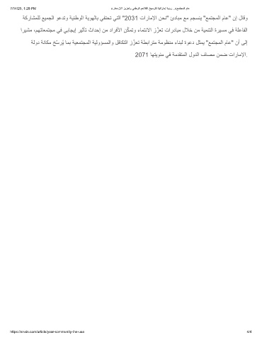 ﺔﻛرﺎﺷﻣﻠﻟ ﻊﯾﻣﺟﻟا وﻋدﺗو ﺔﯾﻧطوﻟا ﺔﯾوﮭﻟﺎﺑ ﻲﻔﺗﺣﺗ ﻲﺗﻟا "2031 تارﺎﻣﻹا نﺣﻧ" ئدﺎﺑﻣ ﻊﻣ مﺟﺳﻧﯾ "ﻊﻣﺗﺟﻣﻟا مﺎﻋ" نإ لﺎﻗو