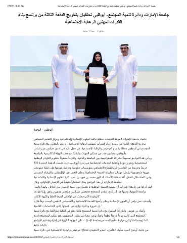 7/9/25, 9:26 AM ﺔﯾﻋﺎﻣﺗﺟﻻا ﺔﯾﺎﻋرﻟا ﻲﯾﻧﮭﻣﻟ تاردﻘﻟا ءﺎﻧﺑ ﺞﻣﺎﻧرﺑ نﻣ ﺔﺛﻟﺎﺛﻟا ﺔﻌﻓدﻟا ﺞﯾرﺧﺗﺑ نﺎﯾﻔﺗﺣﺗ ﻲﺑظوﺑأ -ﻊﻣﺗﺟﻣﻟا ﺔﯾﻣﻧﺗ ةرﺋادو تارﺎﻣﻹا ﺔﻌﻣﺎﺟ
