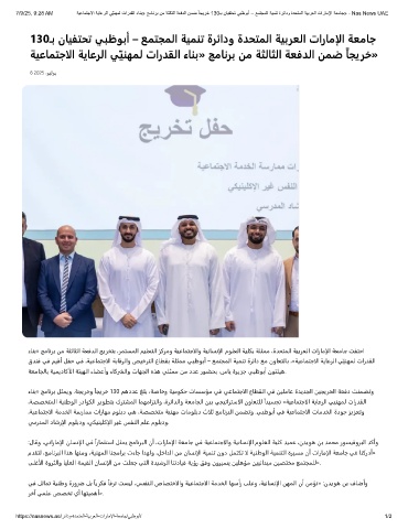 7/9/25, 9:28 AM ﺔﯾﻋﺎﻣﺗﺟﻻا ﺔﯾﺎﻋرﻟا ﻲّﯾﻧﮭﻣﻟ تاردﻘﻟا ءﺎﻧﺑ» ﺞﻣﺎﻧرﺑ نﻣ ﺔﺛﻟﺎﺛﻟا ﺔﻌﻓدﻟا نﻣﺿ ً ﺎﺟﯾرﺧ 130ـﺑ نﺎﯾﻔﺗﺣﺗ ﻲﺑظوﺑأ – ﻊﻣﺗﺟﻣﻟا ﺔﯾﻣﻧﺗ ةرﺋادو ةدﺣﺗﻣﻟا ﺔﯾﺑرﻌﻟا تارﺎﻣﻹا ﺔﻌﻣﺎﺟ» - Nas News UAE