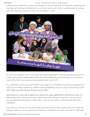 ﻦطﻮﻟا قوﺪﻨﺼﻟ ﺔﯿﻔﯿﺼﻟا ﺞﻣاﺮﺒﻟا ﻢﯿﻈﻨﺗ ﻲﻓ ﺔﻛرﺎﺸﻤﻟا سراﺪﻤﻟا ﺔﻓﺎﻛو ،ﺔﻓﺎﻘﺜﻟا ةرازو دﻮﮭﺠﺑ اﺪﯿﺸﻣ ،ﺎھﺮﯿﻏو تﺎﻘﺑﺎﺴﻤﻟاو ﺐﯾرﺪﺘﻟاو ﮫﯿﻓﺮﺘﻟاو عاﺪﺑﻹﺎﻛ ،ﺔﻨﻜﻤﻤﻟا ﺐﯿﻟﺎﺳﻷاو
