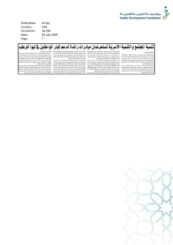 Publication: Al Fajr Country: UAE Circulation: 34,596 Date: 15 July 2025 Page: 7