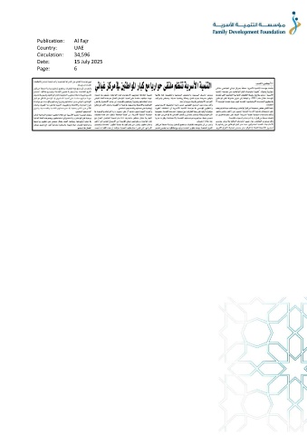Publication: Al Fajr Country: UAE Circulation: 34,596 Date: 15 July 2025 Page: 6