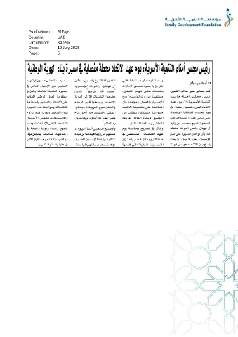 Publication: Al Fajr Country: UAE Circulation: 34,596 Date: 19 July 2025 Page: 6