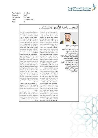 Publication: Al Etihad Country: UAE Circulation: 109,640 Date: 15 July 2025 Page: 21