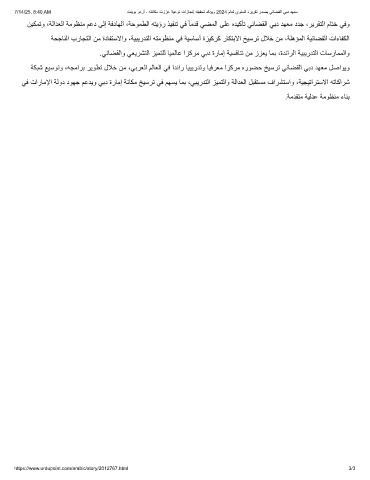 .ﻲﺋﺎﺿﻘﻟاو ﻲﻌﯾرﺷﺗﻟا زﯾﻣﺗﻠﻟ ﺎﯾﻣﻟﺎﻋ ازﻛرﻣ ﻲﺑد ةرﺎﻣإ ﺔﯾﺳﻓﺎﻧﺗ نﻣ ززﻌﯾ ﺎﻣﺑ ،ةدﺋارﻟا ﺔﯾﺑﯾردﺗﻟا تﺎﺳرﺎﻣﻣﻟاو