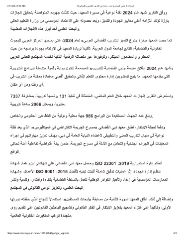ثﯾﺣ نﻣ ﮫﺟﻣارﺑ ةدوﺟﺑ ءﺎﻘﺗرﻻا ﻲﻓ دﮭﻌﻣﻟا ةدﺎﯾرﻟ ًادﯾﻛﺄﺗ ،ﺔﯾﺑرﻌﻟا لودﻟا ﺔﻌﻣﺎﺟﻟ ﻊﺑﺎﺗﻟا ،ﺔﯾﺋﺎﺿﻘﻟاو ﺔﯾﻧوﻧﺎﻘﻟا