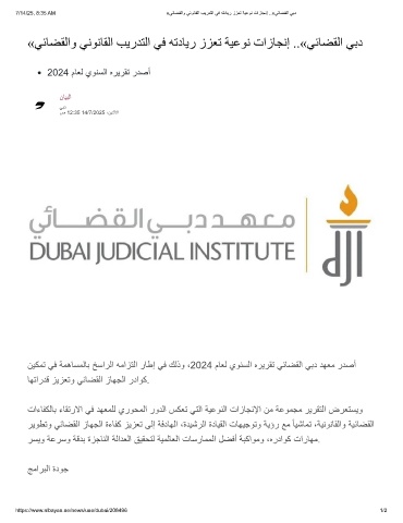 7/14/25, 8:35 AM «ﻲﺋﺎﺿﻘﻟاو ﻲﻧوﻧﺎﻘﻟا بﯾردﺗﻟا ﻲﻓ ﮫﺗدﺎﯾر ززﻌﺗ ﺔﯾﻋوﻧ تازﺎﺟﻧإ ..«ﻲﺋﺎﺿﻘﻟا ﻲﺑد