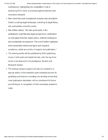 7/17/25, 8:21 AM          Dubai Judicial Institute reveals winners of 2nd edition of ‘Future Research Competition’ | Emirates News Agency