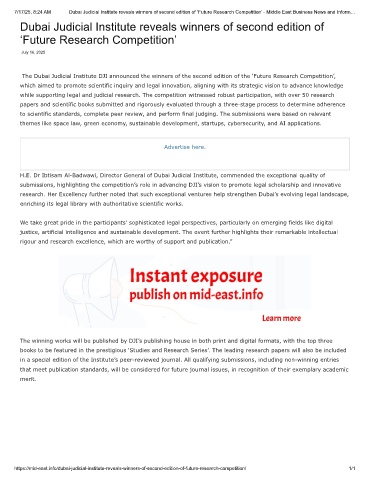 7/17/25, 8:24 AM  Dubai Judicial Institute reveals winners of second edition of ‘Future Research Competition’ - Middle East Business News and Inform…