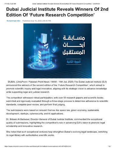 7/17/25, 8:26 AM Dubai Judicial Institute Reveals Winners Of 2nd Edition Of ‘Future Research Competition’ - UrduPoint