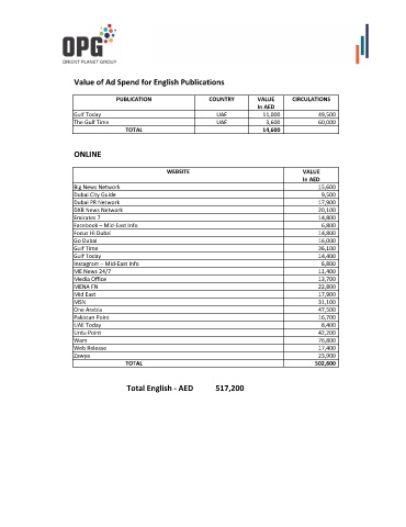 Value of Ad Spend for English Publications