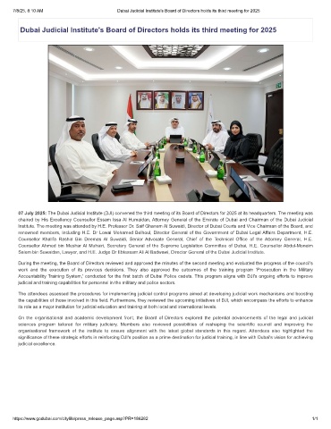 7/8/25, 8:10 AM Dubai Judicial Institute's Board of Directors holds its third meeting for 2025
