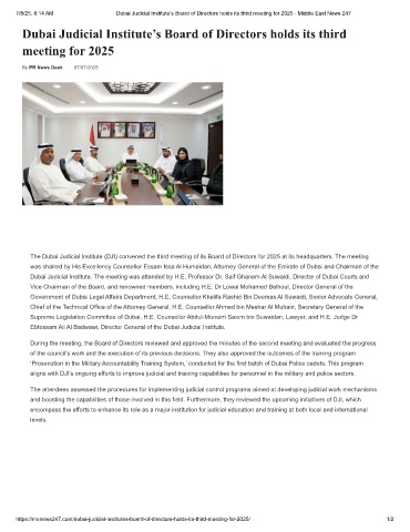 7/8/25, 8:14 AM Dubai Judicial Institute’s Board of Directors holds its third meeting for 2025 - Middle East News 247