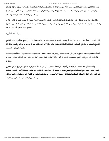 ﮫﻧوﺎﻌﺗو ،هارﺛ ﷲ بﯾط ،نﺎﯾﮭﻧ لآ نﺎطﻠﺳ نﺑ دﯾاز ﺦﯾﺷﻟا ﮫﻟ روﻔﻐﻣﻟا سﺳؤﻣﻟا دﺋﺎﻘﻟاو دﻟاوﻠﻟ ﻲﺧﯾرﺎﺗﻟا رودﻟا رﻛذﺗﺳﻧ ،موﯾﻟا اذھ ﻲﻓ»:لﺎﻗو