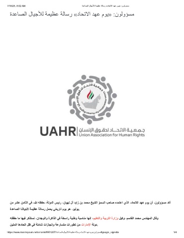 7/18/25, 8:02 AM ةدﻋﺎﺻﻟا لﺎﯾﺟﻸﻟ ﺔﻣﯾظﻋ ﺔﻟﺎﺳر «دﺎﺣﺗﻻا دﮭﻋ موﯾ» :نوﻟوؤﺳﻣ
