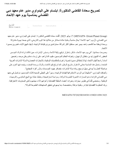 ﺪﮭﻌﻣ مﺎﻋ ﺮﯾﺪﻣ ،يواوﺪﺒﻟا ﻲﻠﻋ مﺎﺴﺘﺑا / ةرﻮﺘﻛﺪﻟا ﻲﺿﺎﻘﻟا ةدﺎﻌﺳ تﺪﱠﻛأ :2025 ﻮﯿﻟﻮﯾ 17 (MENAFN- Orient Planet Group)
