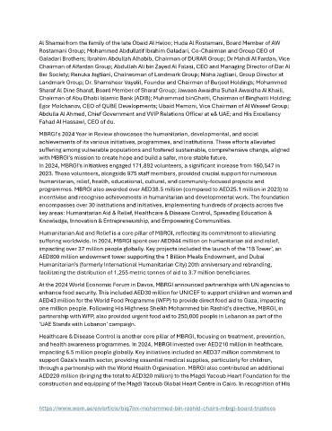 suffering worldwide. In 2024, MBRGI spent over AED944 million on humanitarian aid and relief,