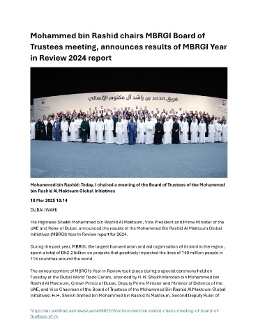 UAE, and Vice Chairman of the Board of Trustees of the Mohammed Bin Rashid Al Maktoum Global