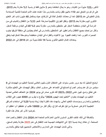 3/18/25, 11:21 AM 2024 ﻰﻣﯾﻠﻌﺗﻟا مﻋدﻟا ﻰﻟإ ﺔﺳﺎﻣ ﺔﺟﺎﺣ ﻰﻓو ررﺿﺗﻣ لﻔط نوﯾﻠﻣ 224 :ءارزوﻟا تﺎﻣوﻠﻌﻣ