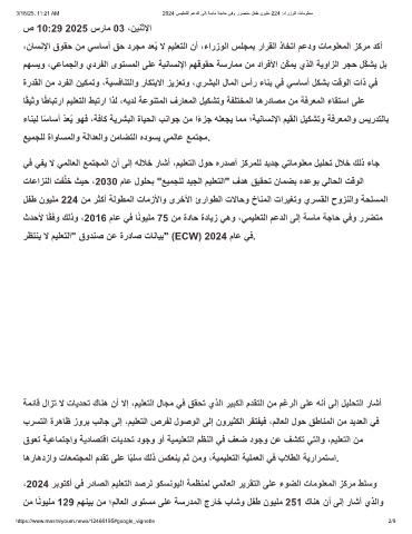 3/18/25, 11:21 AM 2024 ﻰﻣﯾﻠﻌﺗﻟا مﻋدﻟا ﻰﻟإ ﺔﺳﺎﻣ ﺔﺟﺎﺣ ﻰﻓو ررﺿﺗﻣ لﻔط نوﯾﻠﻣ 224 :ءارزوﻟا تﺎﻣوﻠﻌﻣ