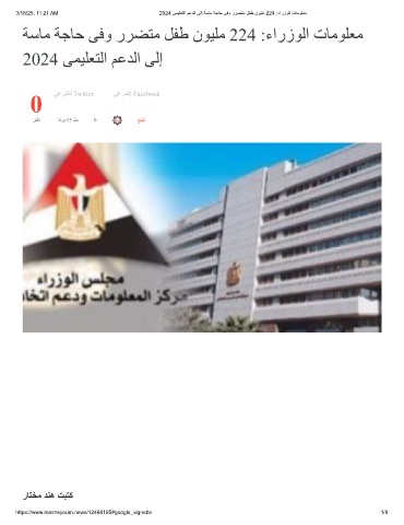 3/18/25, 11:21 AM 2024 ﻰﻣﯾﻠﻌﺗﻟا مﻋدﻟا ﻰﻟإ ﺔﺳﺎﻣ ﺔﺟﺎﺣ ﻰﻓو ررﺿﺗﻣ لﻔط نوﯾﻠﻣ 224 :ءارزوﻟا تﺎﻣوﻠﻌﻣ