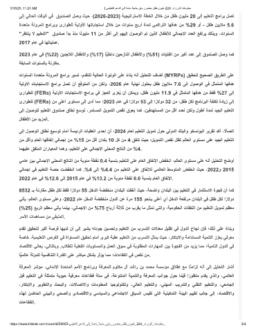 3/18/25, 11:21 AM | ﻰﻣﯾﻠﻌﺗﻟا مﻋدﻟا ﻰﻟإ ﺔﺳﺎﻣ ﺔﺟﺎﺣ ﻰﻓو ررﺿﺗﻣ لﻔط نوﯾﻠﻣ 224 :ءارزوﻟا تﺎﻣوﻠﻌﻣ