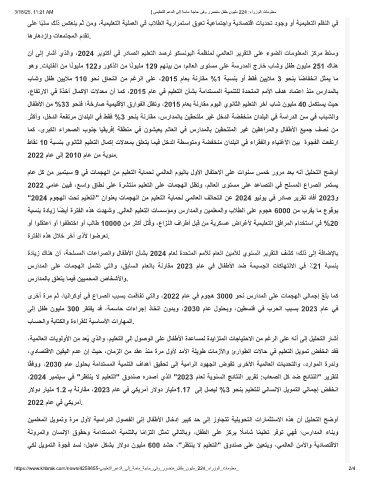 3/18/25, 11:21 AM | ﻰﻣﯾﻠﻌﺗﻟا مﻋدﻟا ﻰﻟإ ﺔﺳﺎﻣ ﺔﺟﺎﺣ ﻰﻓو ررﺿﺗﻣ لﻔط نوﯾﻠﻣ 224 :ءارزوﻟا تﺎﻣوﻠﻌﻣ
