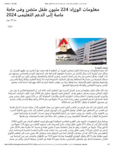 3/18/25, 11:20 AM 2024 ﻰﻣﯾﻠﻌﺗﻟا مﻋدﻟا ﻰﻟإ ﺔﺳﺎﻣ ﺔﺟﺎﺣ ﻰﻓو ررﺿﺗﻣ لﻔط نوﯾﻠﻣ 224 :ءارزوﻟا تﺎﻣوﻠﻌﻣ