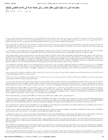 2024 ﻰﻤﯿﻠﻌﺘﻟا ﻢﻋﺪﻟا ﻰﻟإ ﺔﺳﺎﻣ ﺔﺟﺎﺣ ﻰﻓو رﺮﻀﺘﻣ ﻞﻔط نﻮﯿﻠﻣ 224 :ءارزﻮﻟا تﺎﻣﻮﻠﻌﻣ