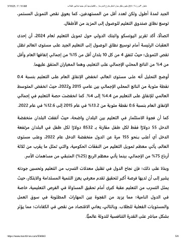 ىﺪﺣإ نأ ،2024 مﺎﻌﻟ ﻢﻴﻠﻌﺘﻟا ﻞﻳﻮﻤﺗ لﻮﺣ ﻲﻟوﺪﻟا ﻚﻨﺒﻟاو ﻮﻜﺴﻧﻮﻴﻟا ﺮﻳﺮﻘﺗ ﺪﻛأ ،اًلﺎﺼﺗا