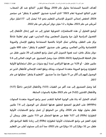 مﺎﻋ ﻲﻓ ﺎﻬﺗﺎﻴﻠﻤﻋ "ﺮﻈﺘﻨﻳ ال ﻢﻴﻠﻌﺘﻟا" قوﺪﻨﺻ أﺪﺑ ﺬﻨﻣ ﺎًﻧﻮﻴﻠﻣ 11 ﻦﻣ ﺮﺜﻛأ ﻰﻟإ ﻢﻬﻴﻟإ لﻮﺻﻮﻟا