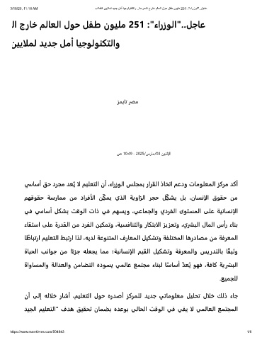 3/18/25, 11:18 AM بﻼطﻟا نﯾﯾﻼﻣﻟ دﯾدﺟ لﻣأ ﺎﯾﺟوﻟوﻧﻛﺗﻟاو ..ﺔﺳردﻣﻟا جرﺎﺧ مﻟﺎﻌﻟا لوﺣ لﻔط نوﯾﻠﻣ 251 :"ءارزوﻟا"..لﺟﺎﻋ