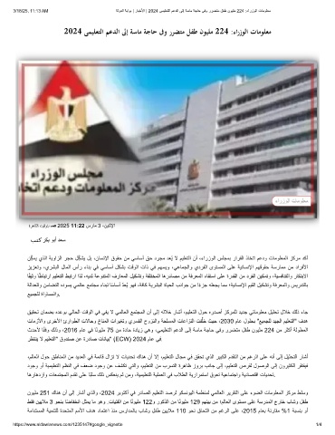 3/18/25, 11:13 AM ﺔﻟودﻟا ﺔﺑاوﺑ | رﺎﺑﺧﻷا | 2024 ﻰﻣﯾﻠﻌﺗﻟا مﻋدﻟا ﻰﻟإ ﺔﺳﺎﻣ ﺔﺟﺎﺣ ﻰﻓو ررﺿﺗﻣ لﻔط نوﯾﻠﻣ 224 :ءارزوﻟا تﺎﻣوﻠﻌﻣ