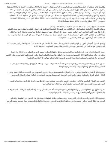 عﺎﻔﺗرﺎﺑ ،2023 مﺎﻋ ﺔﻄﻘﻧ 47.5 ﻞﺑﺎﻘﻣ ،2024 مﺎﻋ ﺔﻄﻘﻧ 47.8 ﻎﻠﺑ ﻲﻤﻟﺎﻌﻟا ﺔﻓﺮﻌﻤﻟا رشﺆﻤﻟ ﻲﻤﻟﺎﻌﻟا ﻂﺳﻮﺘﻤﻟا ﱠ نأ رشﺆﻤﻟا ﺞﺋﺎﺘﻧ ﺖﻔﺸﻛو