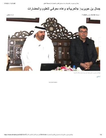 https://www.alkhaleej.ae/2025-03-07/رادﻟا-رﺎﺑﺧأ/تارﺎﻣﻹا-نﻣ-رﺎﺑﺧأ/5813126-تارﺎﺿﺣﻟاو-موﻠﻌﻠﻟ-ﻲـﻓرﻌﻣ-ءﺎﻋو-ﺔﯾﺑرﻌﻟا-برﯾوﺣ-نﺑ-لﺎﻣﺟ 1/2