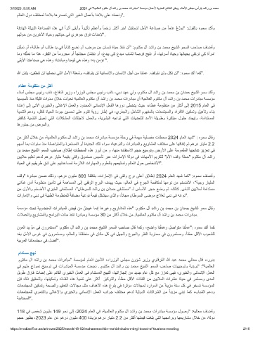 118 ﻲﻓ صﺧﺷ نوﯾﻠﻣ 149 وﺣﻧ ﻰﻟإ ،2024 مﺎﻌﻟا ﻲﻓ ،ﺔﯾﻣﻟﺎﻌﻟا موﺗﻛﻣ لآ دﺷار نﺑ دﻣﺣﻣ تاردﺎﺑﻣ ﺔﺳﺳؤﻣ لوﺻو" :ﮫﯾﻟﺎﻌﻣ فﺎﺿأو