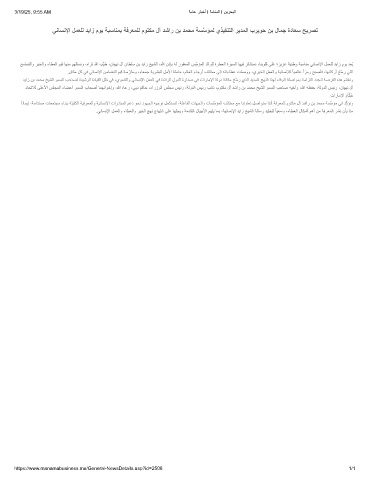 ﻲﻧﺎﺳﻧﻹا لﻣﻌﻠﻟ دﯾاز موﯾ ﺔﺑﺳﺎﻧﻣﺑ ﺔﻓرﻌﻣﻠﻟ موﺗﻛﻣ لآ دﺷار نﺑ دﻣﺣﻣ ﺔﺳﱠﺳؤﻣﻟ يذﯾﻔﻧﺗﻟا رﯾدﻣﻟا برﯾوﺣ نﺑ لﺎﻣﺟ ةدﺎﻌﺳ ﺢﯾرﺻﺗ