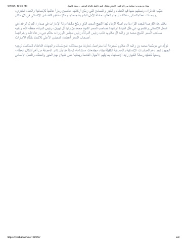 ﻲﻧﺎﺴﻧﻹا ﻞﻤﻌﻟاو ءﺎﻄﻌﻟاو ﺮﯿﺨﻟا ﺞﮭﻧ جﺎﮭﺘﻧا ﻰﻠﻋ ﺎﮭﺜﺤﯾو ﺔﻣدﺎﻘﻟا لﺎﯿﺟﻷا ﻢﮭﻠﯾ ﺎﻤﺑ ،ﺔﯿﻧﺎﺴﻧﻹا ﺪﯾاز ﺦﯿﺸﻟا ﺔﻟﺎﺳر ﺪﯿﻠﺨﺘﻟ ً ﺎﯿﻌﺳو.