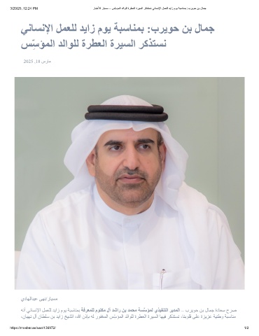 3/20/25, 12:24 PM رﺎﺑﺧﻸﻟ رﺎﺑﺳﻣ – سِّﺳؤﻣﻟا دﻟاوﻠﻟ ةرطﻌﻟا ةرﯾﺳﻟا رﻛذﺗﺳﻧ ﻲﻧﺎﺳﻧﻹا لﻣﻌﻠﻟ دﯾاز موﯾ ﺔﺑﺳﺎﻧﻣﺑ :برﯾوﺣ نﺑ لﺎﻣﺟ