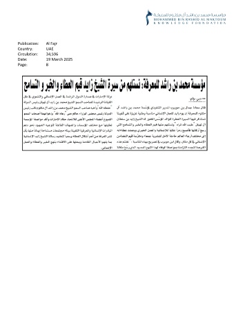 Publication: Al Fajr Country: UAE Circulation: 34,596 Date: 19 March 2025 Page: 8